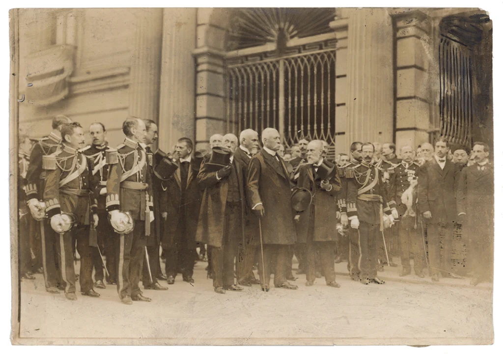 Porfirio Díaz y ministros afuera del Palacio de Minería (fotografía), sin fecha, México. © MODO, Museo del Objeto del Objeto.